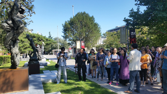 我馆公共教育部的工作人员为学员导赏院内雕塑