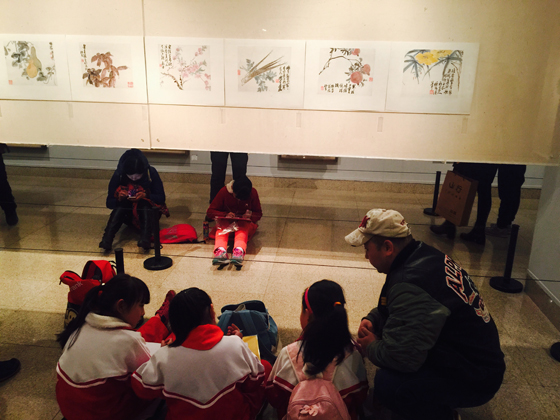 学生们在展厅完成中国美术馆为他们精心设计的学习单