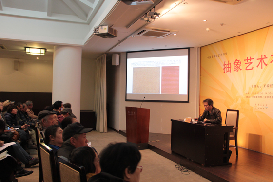 王端廷先生的讲座分为五个部分。一是抽象艺术在中国漫长曲折的发展历程,从抵制到接纳,由贬斥到褒奖。20世纪初留学法国的林风眠等艺术家将抽象艺术引入中国,直到80年代中后期才有了较为宽松自由的社会创造环境,这期间抽象艺术发展的反复和艺术家们遭受的挫折令人唏嘘不已。二是中国抽象艺术的产生。王端廷介绍了从20世纪50年代开始,抽象艺术在中国的阶段式发展,此期间,人才层出不穷,风格各成一派,北京和上海形成了中国抽象艺术的两大中心,中国抽象艺坛变得活力缤纷。三是中国抽象艺术的现实境遇。抽象艺术进入中国面临两大难题:一是本土文化对抽象艺术的误解、排斥和同化,这关系到东西方感性思维和理性思维差别的问题;二是在抽象表现主义和极简主义之后,抽象艺术发展到一定高度后如何再突破行进的问题。在讲座的第四部分,主讲人重点介绍了16位中国抽象艺术家,向听众展示了他们的经典作品和创作风格。讲座最后,王端廷先生阐释了中国抽象艺术的意义,他表示,艺术的价值在于反映时代特征,彰显时代精神。经历了百年变革的中国正处于一个蓬勃向上的工业化时代,抽象艺术具有的理性精神是我们需要的,中国抽象艺术有其存在的合理性和必然性。