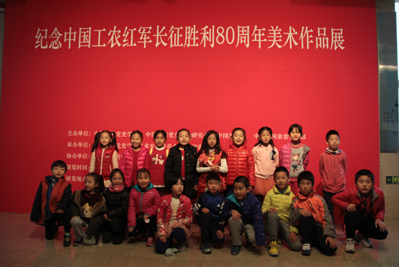 上午,史家小学的同学和家长在中国美术馆优秀志愿者庄则平奶奶的带领下参观学习了“纪念中国工农红军长征胜利80周年美术作品展”。孩子与家长被革命先烈的英雄壮举深深地感染了,在《湘江湘江》画作前,他们被那壮烈的战争景象震撼了;在遵义会议的长卷前,他们了解了这一影响中国革命的关键转折点事件;在四渡赤水作品前,他们感慨毛主席用兵的艺术……