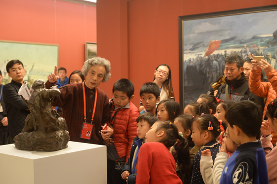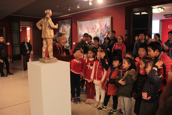雕塑《艰苦岁月》表现的革命乐观主义精神打动了孩子们