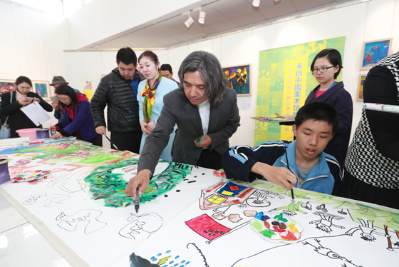 吴为山馆长代表中国美术馆感谢老师和同学们的到来,他说:“在中国美术馆的公共教育空间与同学们共绘美丽的蓝天,温暖的春天,这是大家敞开胸怀的表现。任何人都有各自的特点,有时候可能是障碍,但这不可怕,只要我们有一颗爱心,爱的温度可以把一切融化,可以把封闭的门打开,这就是我们举办这个活动的意义所在。”吴为山馆长表示,中国美术馆是唯一的国家级美术馆,也是中国美术的最高殿堂,肩负着传承优秀传统文化,弘扬当代艺术创作的责任,他说:“通过我们共同的努力,让美洒满人间,让美感染时代,让美在每个人的心灵中升华,变成美的能量,变成爱的能量,让整个生活充满阳光。”