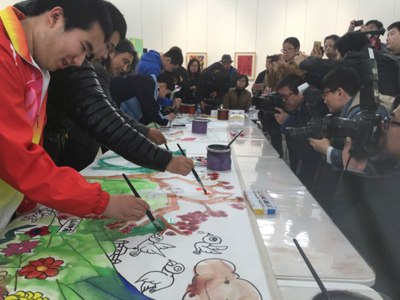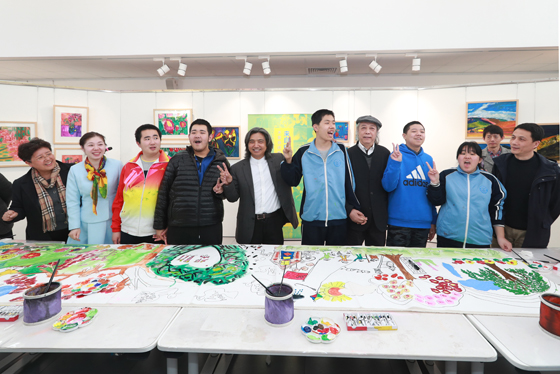 中国美术馆馆长、中国美术家协会副主席吴为山与自闭症孩子们共同创作绘画作品《春天》。近年来,中国美术馆持续对社会弱势人群关注、关心和关爱,并积极探讨艺术与艺术教育对自闭症孩子成长和人生的作用。