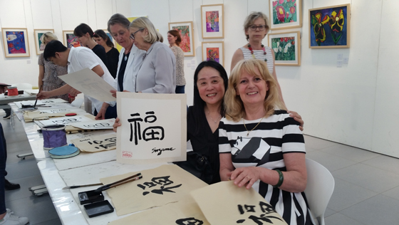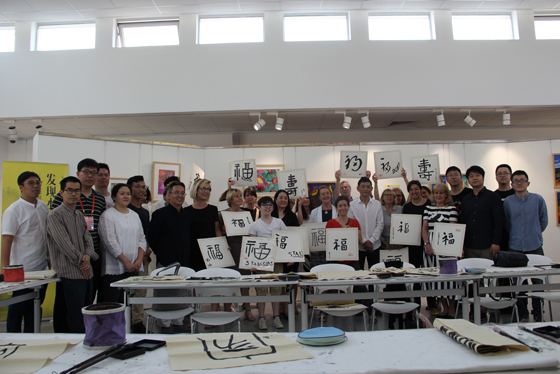 参观结束后,一行人来到中国美术馆艺术教育空间,书法家杨涛及其学生现场讲授并指导法国观众体验中国书法,大家都被中国传统书法文化的魅力和国际文化艺术交流的氛围所打动,不少法国朋友创作了人生中第一张中国书法作品,现场互动热烈,并与新结交的中国老师合影留念。交流活动结束后,法国朋友久久不愿离去,纷纷致谢并希望中国美术馆能推出更多面向外国观众的文化交流系列活动。