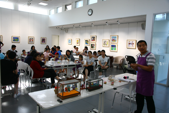 中国美术馆分别于6月3日和6月10日为社区家庭举办4场工作坊活动。伴随着志愿者教员生动的讲解,孩子们和家长们一起欣赏了“宝藏经典 活化精神——中国美术馆典藏精品陈列”中所展出的艺术珍品。在中国美术馆艺术教育空间,北京泥人韩第四代传承人韩宝才向大家展示了泥塑的历史发展和制作环节,并与专业艺术教师一道指导亲子艺术体验。韩宝才从耳熟能详的中国神话“女娲造人“讲起,让孩子们了解到中国泥塑长期的发展与演变,图文结合、生动精彩的讲解激起了孩子们对泥塑玩具的兴趣。随后,参与活动的家庭集体合作,创作家庭作品并展示交流。孩子们积极发散思维,发挥想象构思,捏制了许多富有创造力的不倒翁泥塑。在制作泥塑时,每个孩子的脸上都流露着喜悦与专注。最后,小朋友们手捧制作好的不倒翁作品,和家长、老师合影留念。
