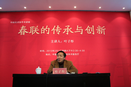 对联,俗称“对子”,雅称“楹联”,或称“门联”、“联语”等,是中华民族传统文化宝库中的一颗璀璨明珠。对联是受众面很广的一种文学体裁,民间也流传了许多对联故事。时至今日,春节作为中华民族的一个重要的传统节日,人们除了放鞭炮、吃团圆饭、包饺子、逛庙会、相互拜年等方式表示庆贺外,贴春联作为一种必不可少的烘托节日气氛的形式,已经成为我国社会生活中的一种文化习俗。春联的复兴不是偶然的,作为一种生动活泼的汉语载体,春联既抒发了中国人内心的欢欣鼓舞,其形式和内容,也符合我们的时代精神。春联所具有的民族性、群众性、实用性和时代性的特性成为春联千百年来经久不衰的内在因素。结合即将在我馆举办的“翰墨传承——中国美术馆癸巳新春楹联书法大展”,叶子彤老师将从春联的起源与发展、春联的特性、春联的创作要点三个方面与听众漫话春联的传承与创新。