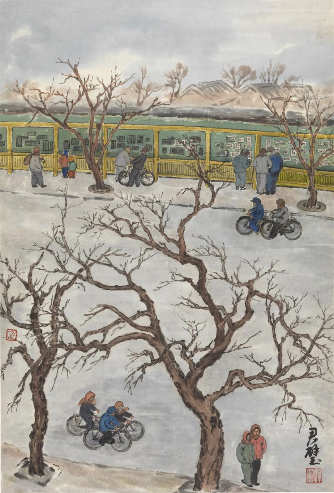 方君璧的这幅《北京冬晨路景》现收藏于中国美术馆。画家用富有生活气息的笔调,描画了上世纪六七十年代北京冬日里的温馨片段。