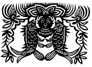 中国众多的被称为“混沌”或“鱼瓶子”的民间剪纸,水瓶底部平线,口部弧形,以喻天圆地方的混沌宇宙;瓶内双鱼相交以喻阴阳相交,化生人类万物,也是诠释中国本原哲学与宇宙本体论的哲学符号密码。