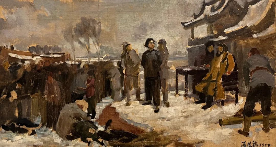 通过立意、构思、酝酿形成腹稿,继而画出来,即所谓的草图。这便是一件创作的初始呈现,也许不成熟,但这凝聚了作者最原始的创作冲动,往往是最为真实的内心流露,也是艺术形式最早的雏形。经常听作者介绍一件创作时说:“数易其稿。”这“易”的过程就是去粗取精、去伪存真的修炼;是创作者创造思维的心路历程;是创作者将客观形态转化为形式的过程;是艺术语言的锤炼!这里容纳了无数的信息,肯定、否定、再肯定、再否定,矛盾的对立与统一,从简单到复杂,再回到单纯,进而纯粹……所以说草图的价值不仅在于为正稿做基础工作,还有研究价值、文献价值、史料价值,尤其是对创作心理的研究有着十分重要的意义。故草图虽为草图,但也有其独特的审美价值。在图像学研究的层面上,我们可以用透视比例的原理来审视艺术家在表现空间时视角与方法,也可以从若干根辅助的“草线”中了解艺术家在创作时将各种事物关联时的逻辑思维的能力。常常,我们会在看各种草图时带着好奇,因为,从这之中可以探究完成稿的秘密,更可以更为深刻地理解完成稿的深刻性。本次展览邀请了当代一些优秀的艺术家提供了他们部分作品的草图,有不少作品已是家喻户晓的名作,但草图却是第一次披露出来。我们可以从一张作品的多幅草图中看到、感悟到艺术家们在创作时没有负担的自由造型和自由表现。这种难得的放松正是艺术创作时进入无我状态的“自在”,在这“自在”状态下的表现,往往令人十分感动,因为它的最重要之处在于“真”。没有装腔作势、没有矫揉造作,在笔触与色彩的表现中充满自由自在、洋溢着生命的感悟。有些作品是国家重大题材的美术作品草图,在草图与成稿的比较中,我们不难发现草图常常予人们以咫尺千里之感。其原因乃在于作者在短时间内完成了构想,一挥而就的出发点是“意”。不为形所囿,不为形式所束缚,更不为既成的表现方式所困扰。从这意义上讲,草图是观摩成品的一面镜子。这“镜子”里可看到更多的晃影,充满想象与神奇。本次展览所邀请的作者都是当代卓有成就的艺术家。在防疫的特殊情况下,他们积极支持中国美术馆的工作,精选出自己代表性草图参加展览,使我们看到了“大作”背后的故事。我要特别感谢执行策展人张峻明先生,热情、诚恳帮助组织了许多艺术家,并在学术理念、展览思路等方面贡献智慧。100×150cm 1972——1973年 中国美术馆藏