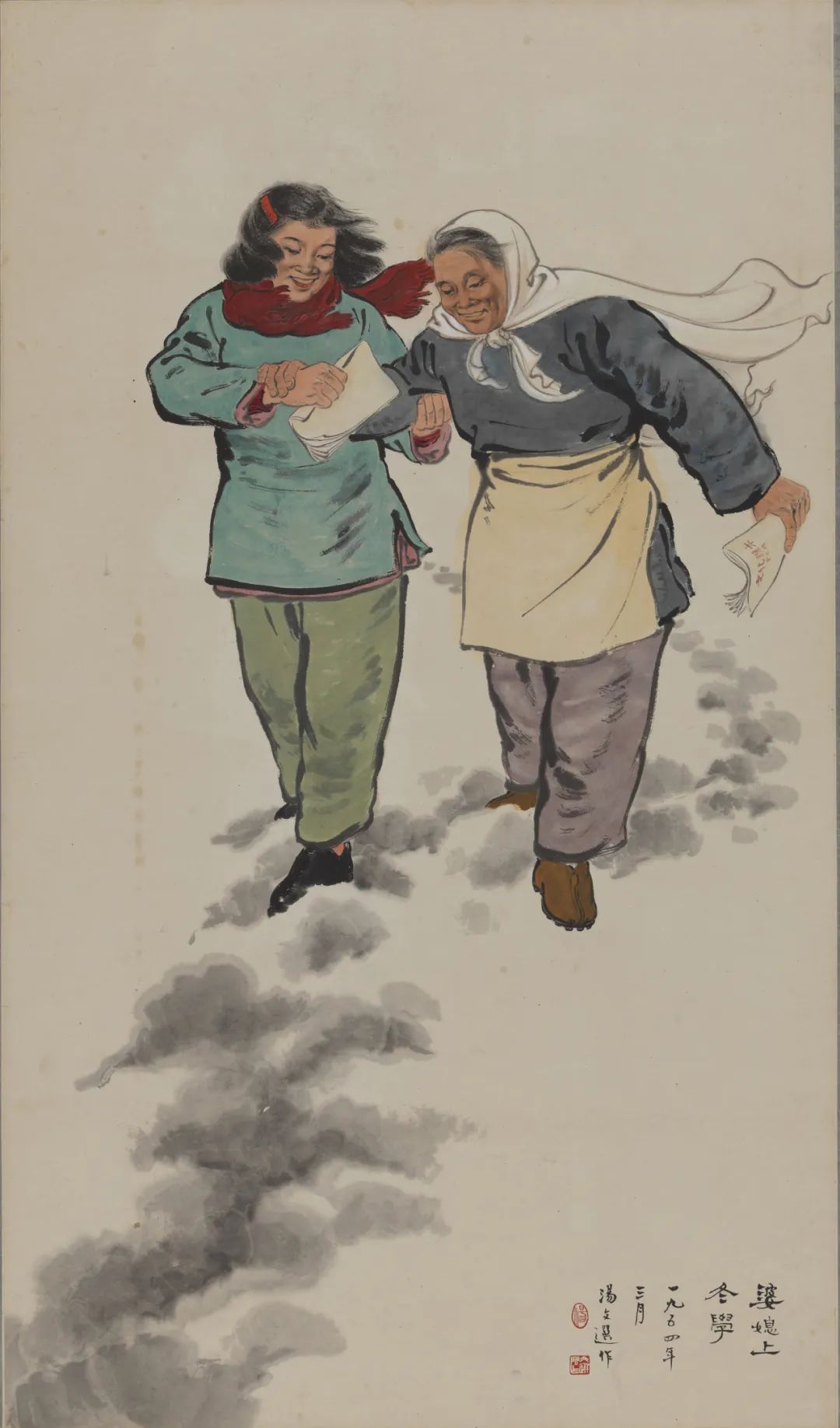 婆媳上冬学 汤文选 中国画