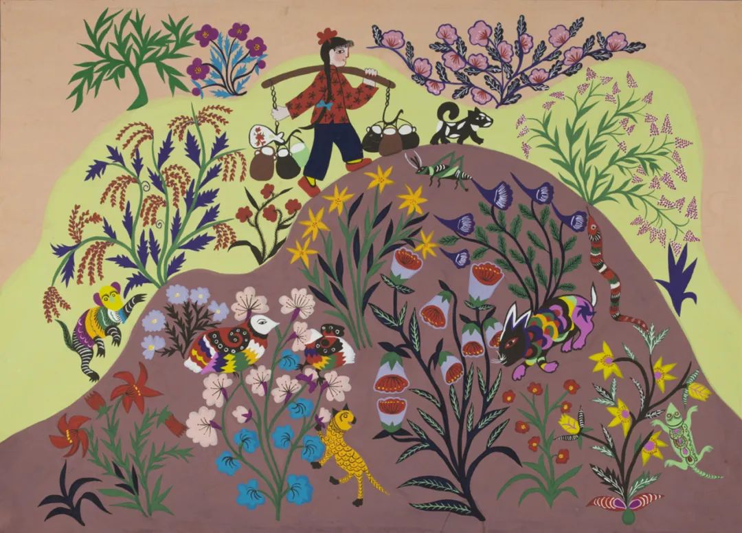 民间美术作为农耕文明的鲜活见证,承载着中国人对自然时序的敬畏与诗意想象。从春节年画中祈福纳祥的愿景,到端午五毒图里趋吉避害的智慧;从七夕牛郎织女的浪漫演绎,到重阳菊花寄寓的尊老情结......这些作品不仅是民俗生活的艺术凝练,更是一代代民众精神世界的璀璨投影。