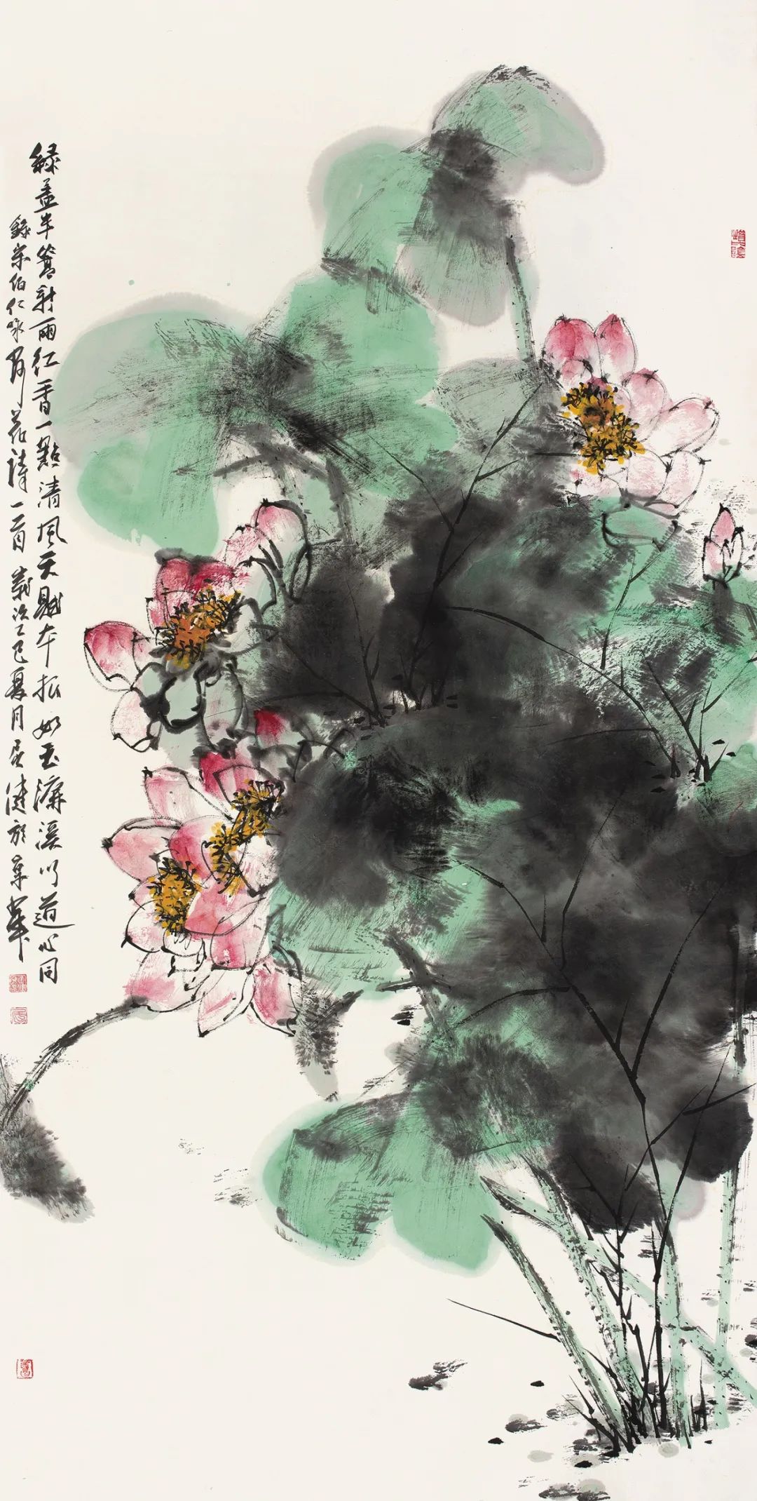 绿盖半篙新雨红  屈健  纸本设色