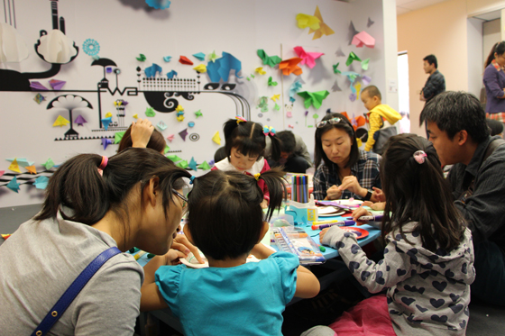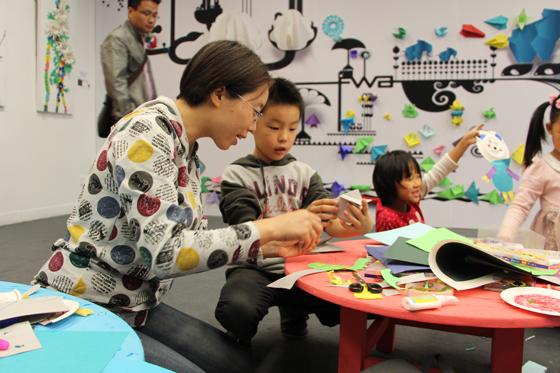 9月15日、21日,公共教育部结合本届活动主题,联合启想儿童艺术中心,先后举办了两场“艺术家教我来创作”儿童主题教育活动。活动分别邀请到了“交互视象——2013海峡两岸当代艺术展”的参展艺术家王雷和刘文涛与小朋友们现场互动,为小朋友们做展览导赏,讲述自己的艺术创作心得,并指导他们进行主体创作体验。