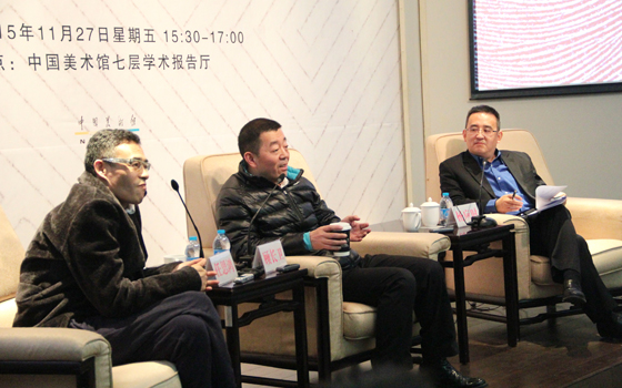 中国美术馆12月2日讯 2015年11月27日下午,中国美术馆七层学术报告厅,一场与著名导演、摄影家顾长卫先生的对话正在热烈进行。应我馆邀请,主讲人顾长卫先生结合正在我馆展出的“视介——顾长卫当代艺术展”,就“摄影作为当代艺术”的话题进行了深刻的解析和讨论,向观众讲述了创作这一系列作品背后的故事和思索。顾长卫好友、当代艺术家任思鸿先生应邀作为讨论嘉宾出席,中国美术馆公共教育部副主任杨应时博士担任此次“与艺术家对话”活动主持人。