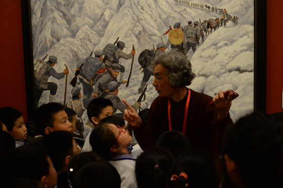 中国美术馆11月2日讯 10月30日,来自北京景山学校一年级四班和史家小学二年级的小同学们走进中国美术馆,结合“纪念中国工农红军长征胜利80周年美术作品展”,在中国美术馆上了一堂生动的“长征精神主题教育课”。