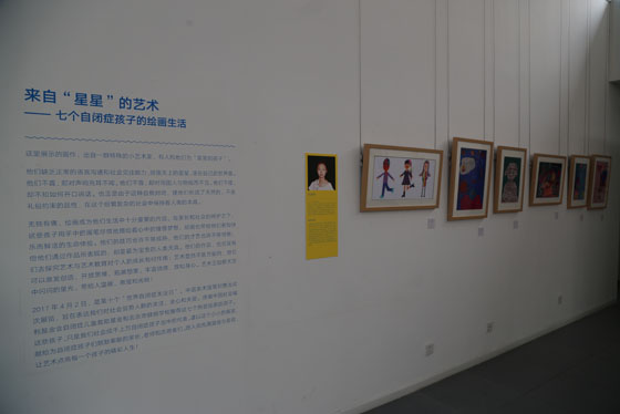 据介绍,此次参展的七名热爱绘画的孩子为:朱紫芊、张英杰、吴赫曦、田天、张雨晴、康睿、任佳伟,分别来自北京、浙江、新疆、山西等地,均由中国社会福利基金会自闭症儿童救助基金和北京市健翔学校推荐。这些孩子只是我们社会成千上万自闭症孩子的缩影。正如展览前言所述:“无独有偶,绘画成为他们生活中十分重要的内容。在家长和社会的呵护之下,这些孩子用手中的画笔尽情地描绘着心中的憧憬梦想,绘画也带给他们更加快乐而鲜活的生命体验。他们的技巧也许不够成熟,他们的才艺也许不够惊艳,但他们通过作品所表现的,却是最为宝贵的人类天真。他们的作品,也引发我们去探究艺术与艺术教育对个人的成长有何作用:艺术显然不是万能的,但它可以激发创造,开放思维,拓展想象,丰富情感,放松身心。艺术正如那天空中闪闪的星光,带给人温暖、希望和光明!…… 谨以这个小小的展览,献给为自闭症孩子们默默奉献的家长、老师和志愿者们。愿人间充满温情与爱意,让艺术点亮每一个孩子的精彩人生!”