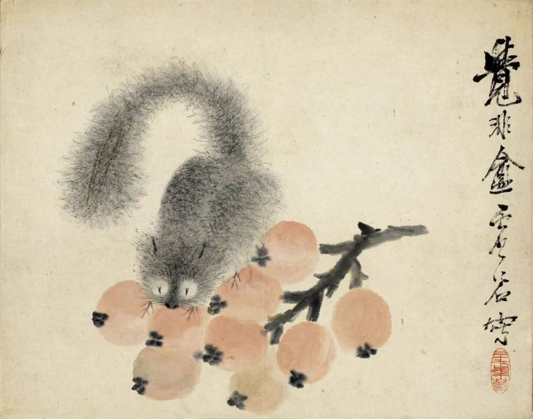 枇杷松鼠 虚谷 国画