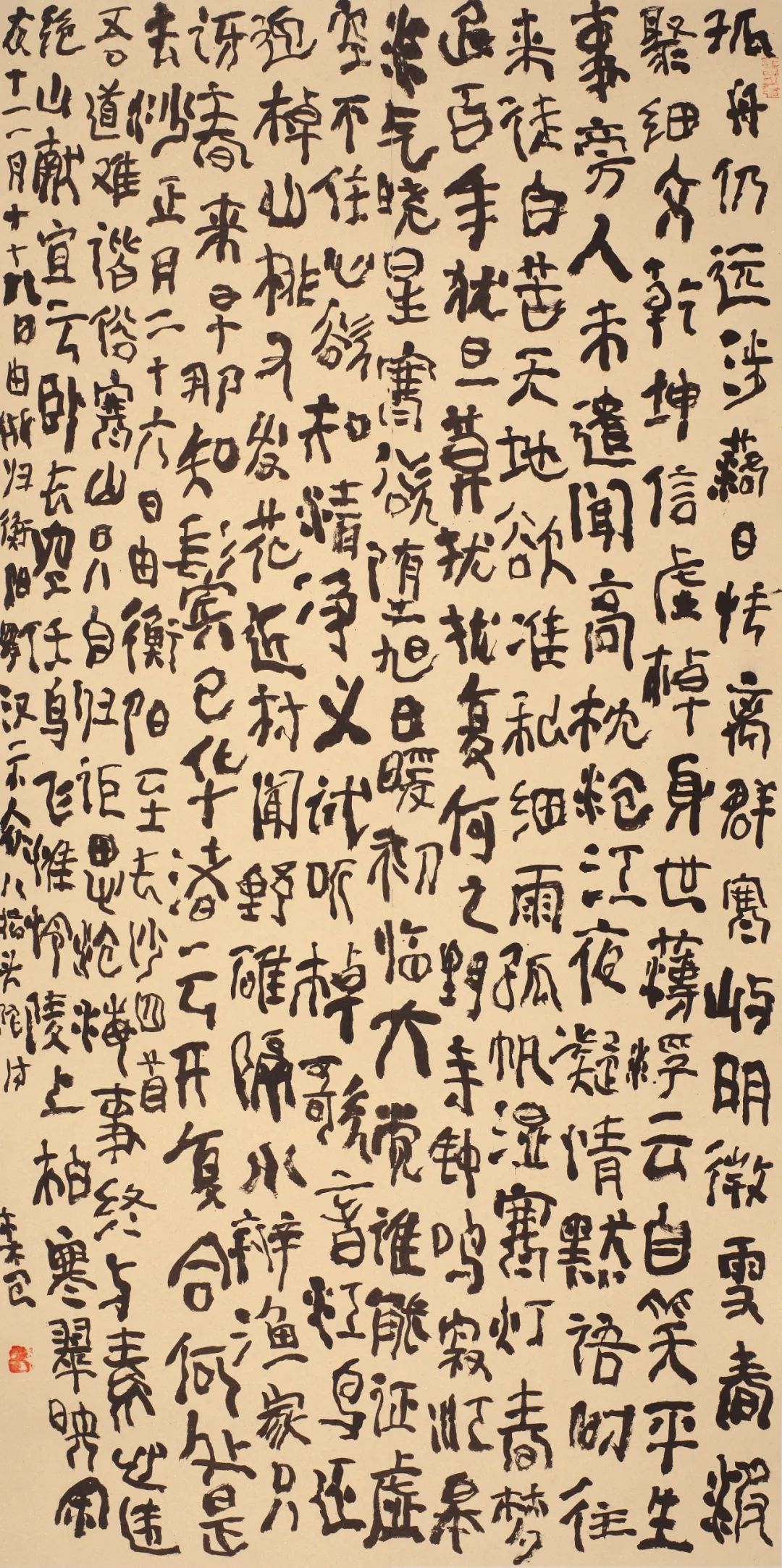 时代风格,更多地体现为艺术随时序世情更迭而变化。清人梁巘《评书帖》中有“晋尚韵、唐尚法、宋尚意、元明尚态”,此间的“韵”“法”“意”“态”,均以一个字而概括时代风格。当然,时代风格非空中楼阁,须以继承传统为基础。宗白华说:“历史上向前一步的发展,往往是伴着向后一步的探本穷源。”进言之,新艺术风格的诞生,应有“积学以储宝”的过程。师古皆属“积学”的重要途径,艺术家在对传统充分了解、学习、继承、掌握的基础上,敏锐地捕捉所处时代的社会文化环境特征,师古师心,因情而变,顺势而作,凌逾古今——恰如千年前的苏轼,“本之平原以树其骨,酌之少师以发其姿,参之北海以峻其势”,博采众家之长又独出机杼,成为尚意时代书风的典范。今人高二适亦有“出入于千数百家而自成一体”。所谓“一代之风,无有不肖乎一代之人与文者”,可见书、文乃一律也。由是,我们不妨借《文心雕龙·通变》的文字来概括书法之时代风格的酝酿与形成:“文(书)律运周,日新其业。变则可久,通则不乏。趋时必果,乘机无怯。望今制奇,参古定法。”新时代,书法获得了新的角色。其植根于中国特色社会主义文化沃土,以无比自信的姿态吸吮传统的源头活水,“中国风格”“中国气派”成为创作理念,“中华美学精神”成为创作导引,“筑就中华民族伟大复兴时代文艺高峰”成为追求目标。新时代的浩浩书风中,国家、民族、个人的前程、使命、责任、审美、希冀,皆蕴于其间……新年将至,我约请曾来德先生策展,邀请当今书家以时代新作玉成了中国美术馆学术邀请系列展。相信通过展览,观众能体会到新时代书法家的壮志与活力,领略到新时代书风中蕴含的文韵与春意。