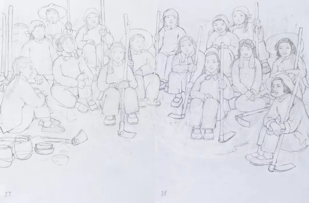 通过立意、构思、酝酿形成腹稿,继而画出来,即所谓的草图。这便是一件创作的初始呈现,也许不成熟,但这凝聚了作者最原始的创作冲动,往往是最为真实的内心流露,也是艺术形式最早的雏形。经常听作者介绍一件创作时说:“数易其稿。”这“易”的过程就是去粗取精、去伪存真的修炼;是创作者创造思维的心路历程;是创作者将客观形态转化为形式的过程;是艺术语言的锤炼!这里容纳了无数的信息,肯定、否定、再肯定、再否定,矛盾的对立与统一,从简单到复杂,再回到单纯,进而纯粹……所以说草图的价值不仅在于为正稿做基础工作,还有研究价值、文献价值、史料价值,尤其是对创作心理的研究有着十分重要的意义。故草图虽为草图,但也有其独特的审美价值。在图像学研究的层面上,我们可以用透视比例的原理来审视艺术家在表现空间时视角与方法,也可以从若干根辅助的“草线”中了解艺术家在创作时将各种事物关联时的逻辑思维的能力。常常,我们会在看各种草图时带着好奇,因为,从这之中可以探究完成稿的秘密,更可以更为深刻地理解完成稿的深刻性。本次展览邀请了当代一些优秀的艺术家提供了他们部分作品的草图,有不少作品已是家喻户晓的名作,但草图却是第一次披露出来。我们可以从一张作品的多幅草图中看到、感悟到艺术家们在创作时没有负担的自由造型和自由表现。这种难得的放松正是艺术创作时进入无我状态的“自在”,在这“自在”状态下的表现,往往令人十分感动,因为它的最重要之处在于“真”。没有装腔作势、没有矫揉造作,在笔触与色彩的表现中充满自由自在、洋溢着生命的感悟。有些作品是国家重大题材的美术作品草图,在草图与成稿的比较中,我们不难发现草图常常予人们以咫尺千里之感。其原因乃在于作者在短时间内完成了构想,一挥而就的出发点是“意”。不为形所囿,不为形式所束缚,更不为既成的表现方式所困扰。从这意义上讲,草图是观摩成品的一面镜子。这“镜子”里可看到更多的晃影,充满想象与神奇。本次展览所邀请的作者都是当代卓有成就的艺术家。在防疫的特殊情况下,他们积极支持中国美术馆的工作,精选出自己代表性草图参加展览,使我们看到了“大作”背后的故事。我要特别感谢执行策展人张峻明先生,热情、诚恳帮助组织了许多艺术家,并在学术理念、展览思路等方面贡献智慧。100×150cm 1972——1973年 中国美术馆藏