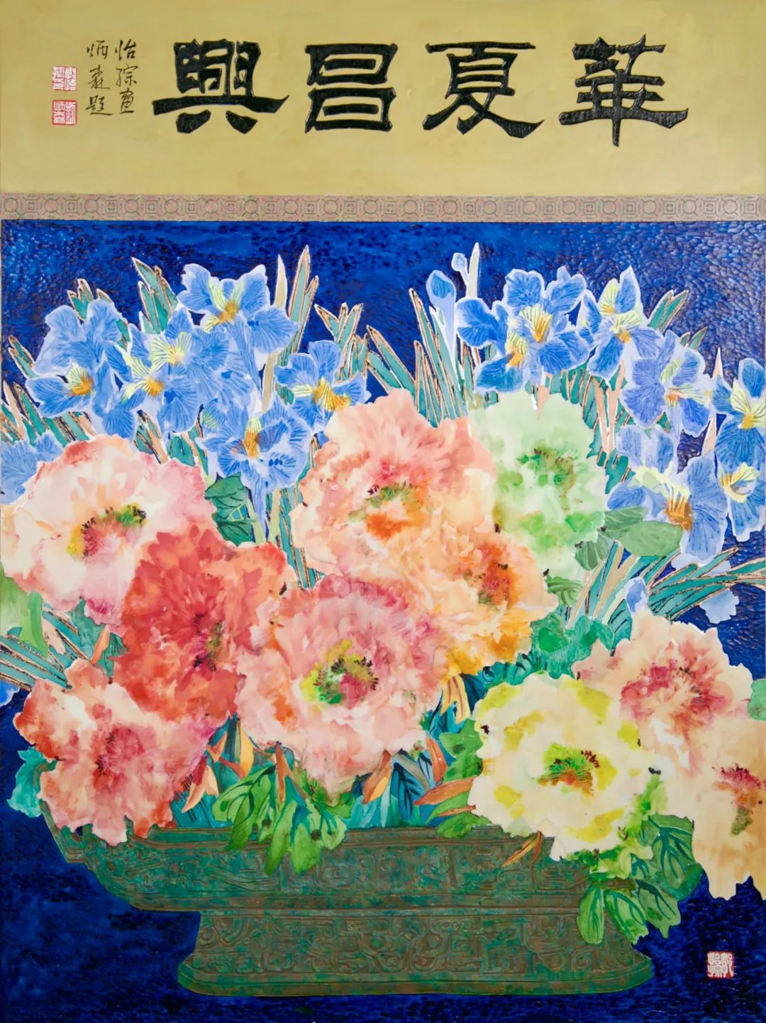 中国美术馆以文献为茎、作品为瓣、理念为蕊而打造的“花香深处——郭怡孮新作展”,将引领观者步入这位新中国培养的花鸟画家、美术教育家的艺术空间。其主题性花鸟画创作尤见新意,时代音符流转于毫端——泼墨如瀑,彩染如霞,牡丹雍容仿佛盛世鼓点,翠竹飒沓好似改革风声,芳菲锦簇间,花语与民声交响,丹青与时代共鸣。这些花鸟意象还植入了实用美术的肌理,让瓷釉染上水墨呼吸,使织物流淌山水韵律。展台上的日用品,更是中国花鸟文化对生活的温柔叩击。它们化作春风,拂过数字屏幕与智能织物,在新时代的经纬中续写传统的生机。