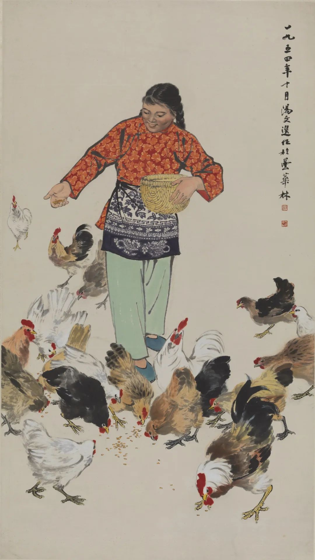 喂鸡 汤文选 中国画