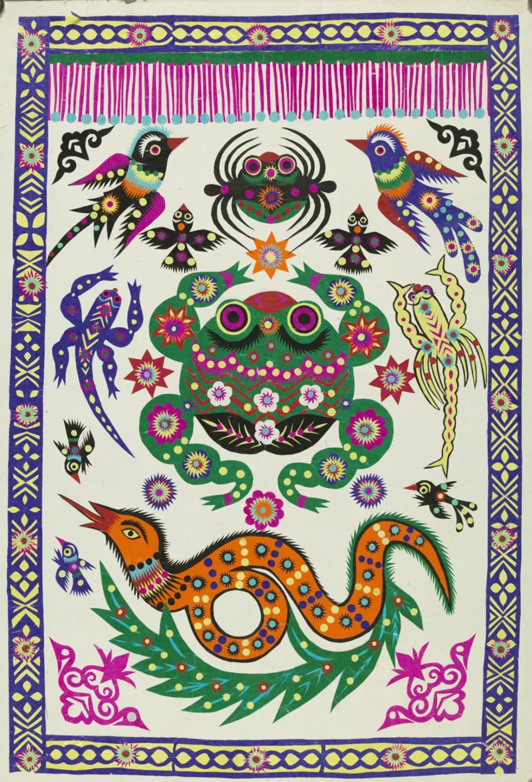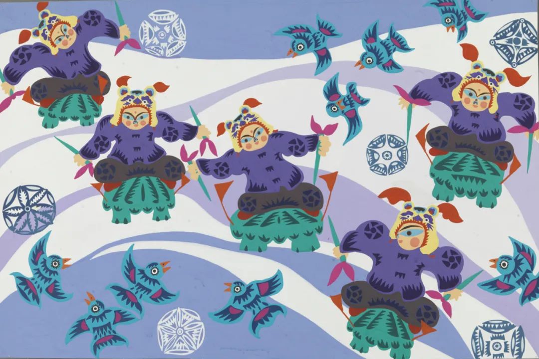民间美术作为农耕文明的鲜活见证,承载着中国人对自然时序的敬畏与诗意想象。从春节年画中祈福纳祥的愿景,到端午五毒图里趋吉避害的智慧;从七夕牛郎织女的浪漫演绎,到重阳菊花寄寓的尊老情结......这些作品不仅是民俗生活的艺术凝练,更是一代代民众精神世界的璀璨投影。